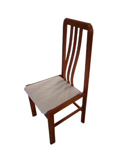 Conjunto de 2 sillas de comedor de madera con asiento tapizado. Diseño clásico con respaldo alto que aporta comodidad. Ideales para comedor o cocina.