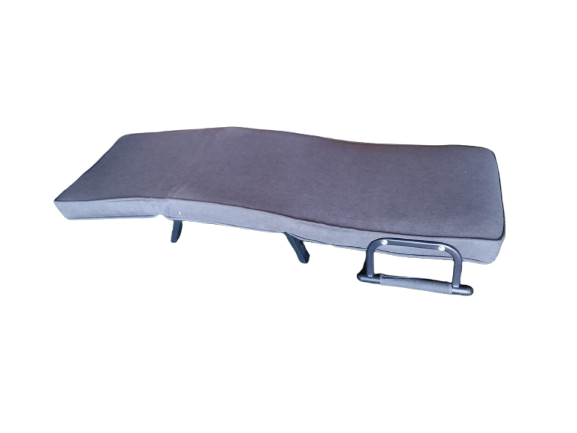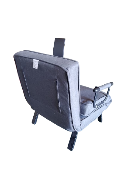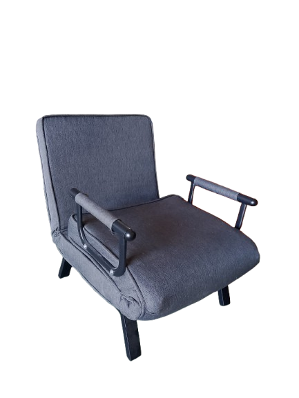 Sillón tapizado en gris con estructura resistente y apoyabrazos acolchados, que se convierte fácilmente en cama individual. Diseño moderno y funcional, adecuado para uso diario o como mueble de apoyo. Se adapta cómodamente al cuerpo gracias a su acolchado suave. Perfecto para salones, habitaciones pequeñas o rincones de lectura y descanso. Combina estabilidad, ergonomía y estética contemporánea. Un mueble dos-en-uno: sillón + cama auxiliar, práctico y elegante.