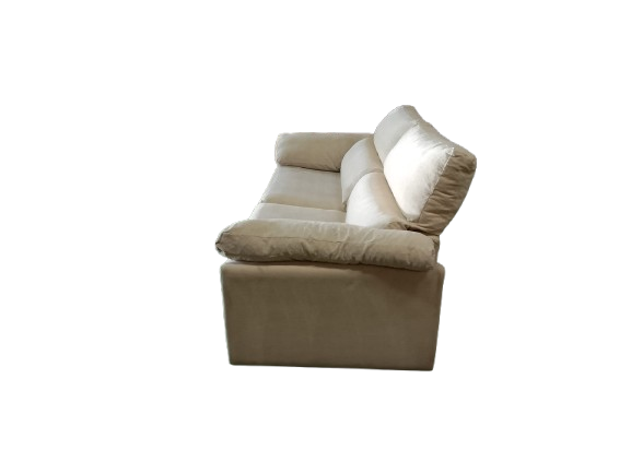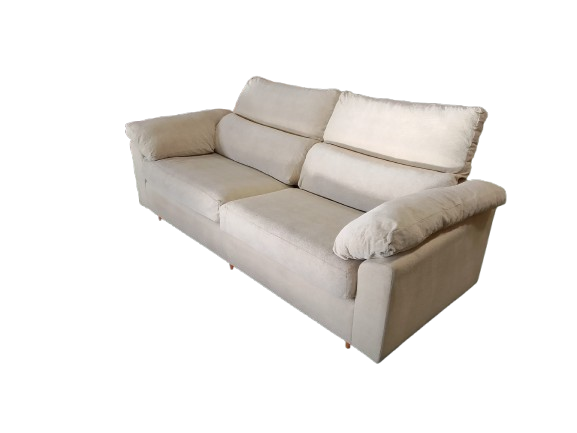 Sofá amplio y cómodo de tres plazas, tapizado en tono beige claro. Ideal para salón o sala de estar gracias a su diseño mullido y acogedor.