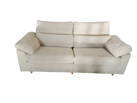 Este sofá de tres plazas ofrece una excelente comodidad gracias a sus cojines amplios y respaldo alto. El tapizado en color beige combina fácilmente con cualquier estilo decorativo. Presenta una estructura robusta y un diseño atemporal que encaja tanto en viviendas como en espacios de uso común. El asiento es firme pero cómodo y los reposabrazos acolchados aumentan el confort. Perfecto para relajarse, ver la televisión o recibir visitas. Una opción práctica y económica para renovar el salón.
